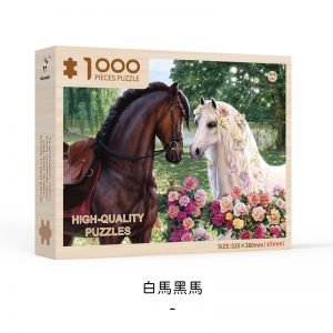 【白馬黑馬】【精品1000片】【高檔椴木】【可捲可提】防水防潮手繪插畫風格精品減壓1000片環保木質覆膜無毒無味拼圖