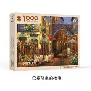 【巴塞隆拿的夜晚】【精品1000片】【高檔椴木】【可捲可提】防水防潮手繪插畫風格精品減壓1000片環保木質覆膜無毒無味拼圖