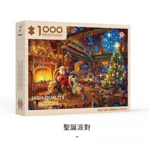 【聖誕派對】【精品1000片】【高檔椴木】【可捲可提】防水防潮手繪插畫風格精品減壓1000片環保木質覆膜無毒無味拼圖