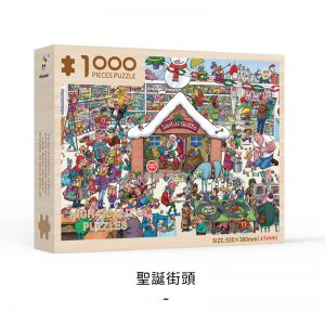 【聖誕街頭】【精品1000片】【高檔椴木】【可捲可提】防水防潮手繪插畫風格精品減壓1000片環保木質覆膜無毒無味拼圖