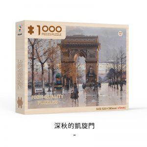【深秋的凱旋門】【精品1000片】【高檔椴木】【可捲可提】防水防潮手繪插畫風格精品減壓1000片環保木質覆膜無毒無味拼圖