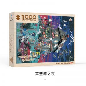 【萬聖節之夜】【精品1000片】【高檔椴木】【可捲可提】防水防潮手繪插畫風格精品減壓1000片環保木質覆膜無毒無味拼圖