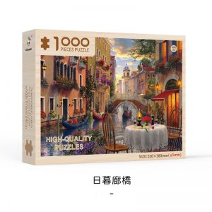 【日暮廊橋】【精品1000片】【高檔椴木】【可捲可提】防水防潮手繪插畫風格精品減壓1000片環保木質覆膜無毒無味拼圖