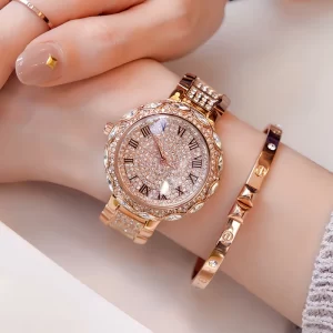 女錶・時來運轉 | 可旋轉鑲鑽滿天星錶盤 | 日本防水石英機芯 | 精鋼鍍金錶帶 | 加硬礦物水晶錶鏡 | 超美奪目鑲鑽滿天星女士手錶