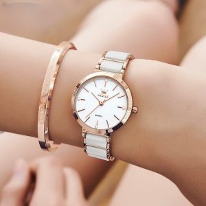 女錶・山茶花之戀 | 鑲鑽山茶花錶盤 | 雅白陶瓷錶帶 | 日本防水石英機芯 | 鑲鑽玫金錶殼 | WLISTH山茶花滿鑽陶瓷錶帶防水氣質女士腕錶