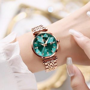 女錶・時光裡的戀人 | 立體鑽石切割錶盤 | 心動玫金鋼帶 | 日曆視窗 | 礦物鍍膜耐磨錶鏡 | 30米強壓防水 | 高清夜光 | 瑞士OLEVS女生石英手錶
