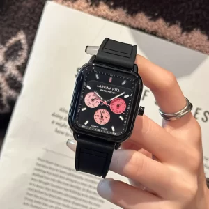女錶・夜曲糖霜 | 粉色三眼計時錶盤 | 個性方形錶殼 | 礦物鍍膜錶鏡 | 柔軟矽膠錶帶 | 30米防水 | Lareina Rita個性女士潮酷方形手錶