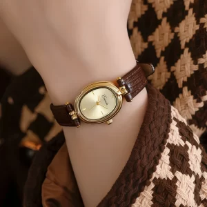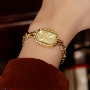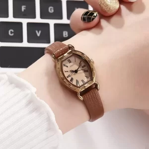 女錶・鎏金歲月 | 流動星鑽玫金錶盤 | 高級防水石英機芯 | 真皮小牛皮帶 | 高硬礦物玻璃錶鏡 | 復古羅馬刻度滿鑽橢圓高級女士手錶
