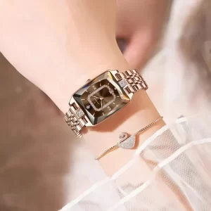 女錶・晚玫 | 菱形披花切割錶盤 | 天然拉絲貝母錶盤 | 條釘鑲鑽刻度 | 日本高級石英機芯 | 50米防水 | 瑞士POEDAGAR高級女式石英手錶