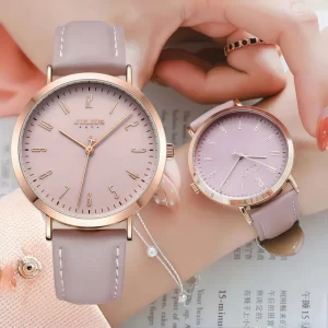 情侶手錶・共赴時光 | 玫金鑲鑽錶盤 | 竹節紋理皮帶 | 礦物強化錶鏡 | 30米防水 | 正韓設計簡約浪漫情侶手錶