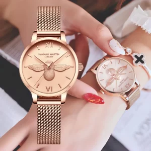 女錶・幸運金蜂 | 幸運浮雕金蜂錶盤 | 米蘭尼斯玫金網帶 | 日本防水機芯 | 復古羅馬刻度 | HANNAH MARTIN英倫輕奢減齡百搭復古腕錶