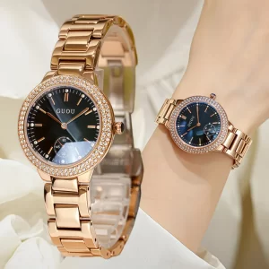 女錶・秀場側影 | 奧地利滿圈水鑽 | 獨立小秒盤 | 日本高檔機芯 | 流光玫金鋼帶 | 藍光礦物水晶錶鏡 | GUOU奢級氣質閃鑽玫金女士手錶