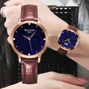 女錶・午夜星河 | 藍砂石星空錶盤 | 流光玫金錶殼 | 小牛皮錶帶 | 30米防水 | WLISTH深邃百搭女士腕錶