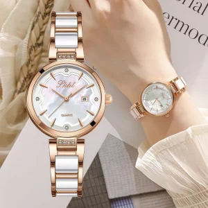 女錶・終身美麗 | 高級陶瓷錶帶 | 日本原裝機芯 | 美韻鑲鑽刻度 | 電鍍玫金錶盤 | 30米強壓防水 | 瑞士OLEVS高級陶瓷優雅輕奢百搭腕錶