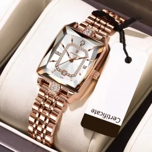女錶・晚玫 | 菱形披花切割錶盤 | 天然拉絲貝母錶盤 | 條釘鑲鑽刻度 | 日本高級石英機芯 | 50米防水 | 瑞士POEDAGAR高級女式石英手錶