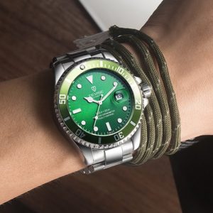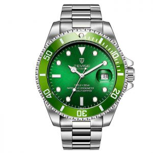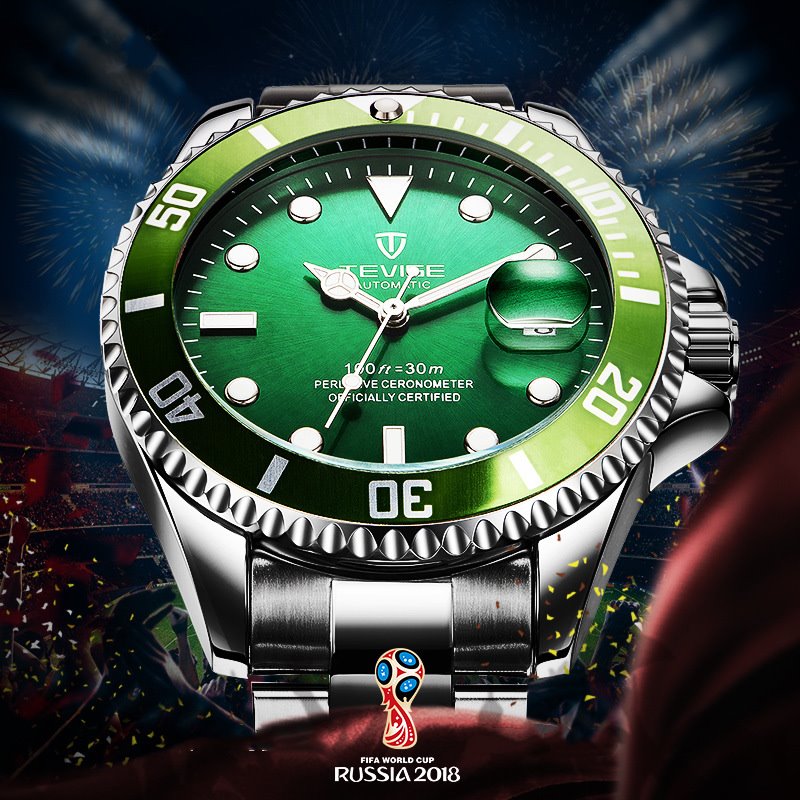 深海潛航無懼隨心 | 全自動機械機芯 | 單向旋轉視距外圈 | 強視夜光 | 水滴日曆視窗 | 實心鋼帶 | 瑞士TEVISE經典綠水鬼男士全自動機械錶