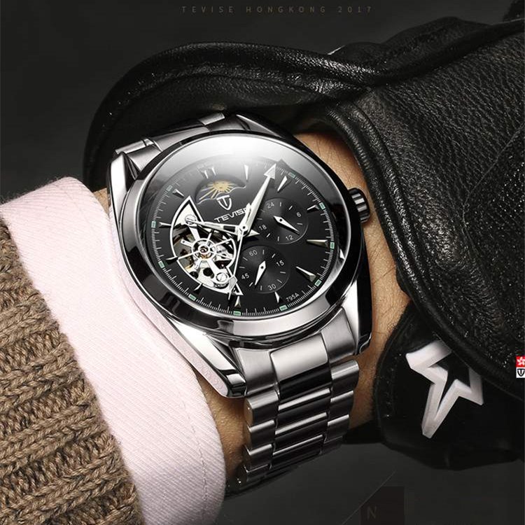 月相飛輪穿搭臻品 | 全自動機械機芯 | 尊貴鏤空陀飛輪 | 星辰月相 | 獨立小錶盤 | 強視夜光 | 30米防水 | 實心鋼帶 | TEVISE非凡氣質男士全自動機械錶