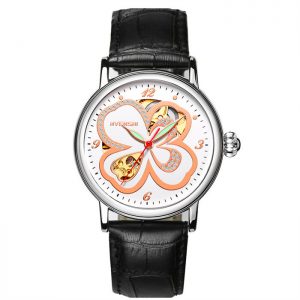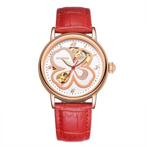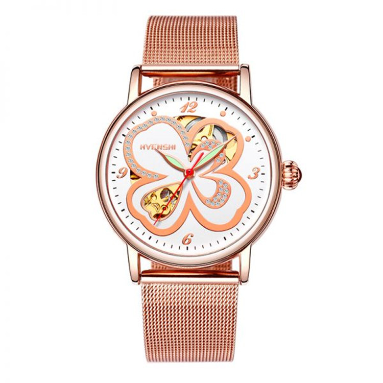 全自動機械機芯 | 四葉幸運草鏤空錶盤 | 玫金網帶 | 30米防水 | 正韓HVENSHI名媛款四葉幸運草小圓盤女士自動機械錶