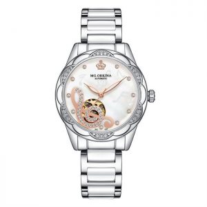 【全自動機械機芯】【陶瓷錶帶】【蝴蝶貝母錶盤】MG.ORKINA奢華全自動機芯陶瓷錶帶櫻花鑲鑽鏤空錶盤手錶OL小資女神手錶