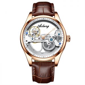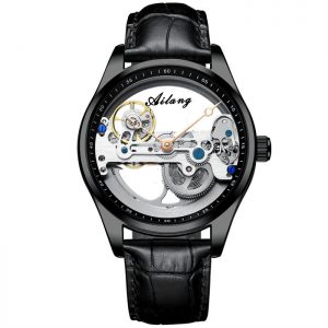 【陀飛輪全自動機械錶】【極致雙面鏤空】【小牛皮錶帶】瑞士AILANG機械美感極致雙面鏤空小牛皮帶全自動男機械手錶