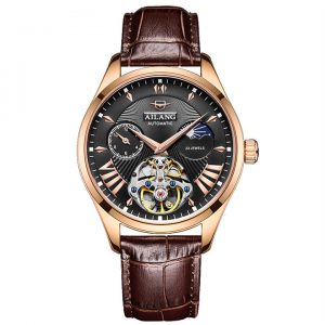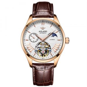 舵手系列 | 全自動機械機芯 | 鏤空陀飛輪 | 獨立小錶盤 | 星辰月相 | 小牛皮帶 | 強視夜光 | 30米防水 | 瑞士AILANG男士陀飛輪全自動機械錶
