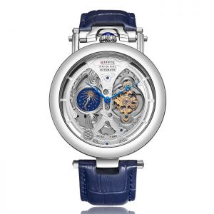 機械工藝美學全自動機械錶 | 瑞士陀飛輪工藝 | 極致雙面鏤空 | 日月星象 | 雙時區時間 | 50米防水 | 小牛皮錶帶 | DIFFUL男士全自動機械手錶