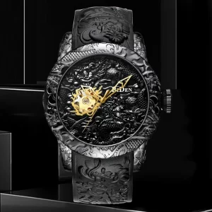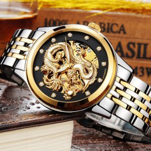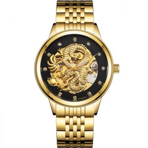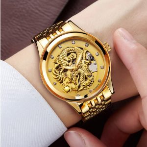 浮雕金龍王者風範 | 全自動機械機芯 | 精鋼鍍金錶帶 | 耐磨藍寶石表鏡 | 夜光指針 | 30米防水 | 尊貴奢侈鏤空金龍浮雕錶盤男士全自動機械手錶