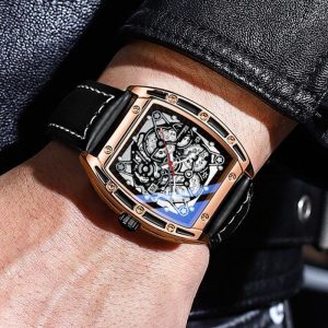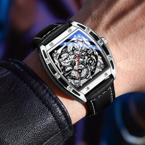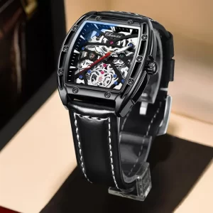 【全自動鏤空機械錶】【戰術級方形錶盤】韓版高檔全自動鏤空機械機芯方形錶盤自動上鏈男機械手錶