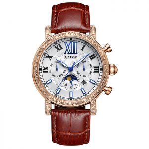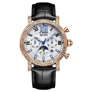 浪漫巴黎法式多功能腕錶 | 全自動機械機芯 | 奢華浮雕錶盤 | 日曆月曆星期指示 | 小牛皮錶帶 | 夜光指針 | 30米防水 | KINYUED瑞士工藝全自動機械錶