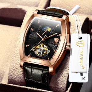復古浪漫酒桶腕錶 | 全自動機械錶 | 尊貴鏤空陀飛輪 | 星辰月相 | 藍寶石錶鏡 | 小牛皮帶 | 30米防水 | 正品TEVISE男士全自動機械錶