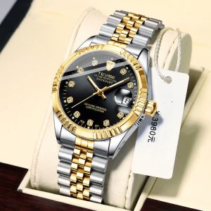 經典商務低調精緻 | 全自動機械機芯 | 鑲鑽刻度 | 實心鋼帶 | 水滴日曆視窗 | 高清夜光 | 30米防水 | 瑞士TEVISE經典商務男士自動上鍊機械腕錶