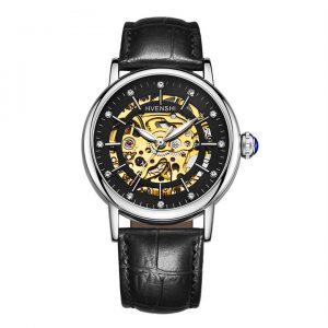 輕奢鏤空鑲鑽小圓錶 | 全自動機械機芯 | 紅寶石錶冠 | 小牛皮錶帶 | 強化礦物玻璃鏡面 | 30米防水 | 夜光指針 | HVENSHI女士全自動機械腕錶