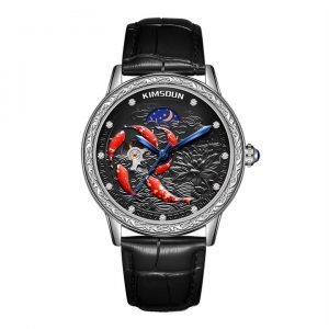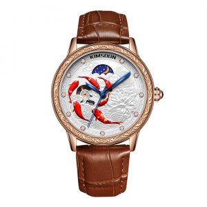 好運錦鯉高級腕錶 | 全自動機械機芯 | 立體雕花鑲鑽錶盤 | 鏤空星河月相 | 小牛皮錶帶 | 30米防水 | KIMSDUN好運錦鯉高級男女全自動機械錶