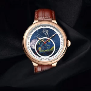 瑞士工藝全自動機械手錶 | 浪漫梵谷星空錶盤 | 小牛皮錶帶 | 30米密封防水 | 夜光指針 | 貴族氣質鑲鑽星空錶盤全自動機械錶男錶