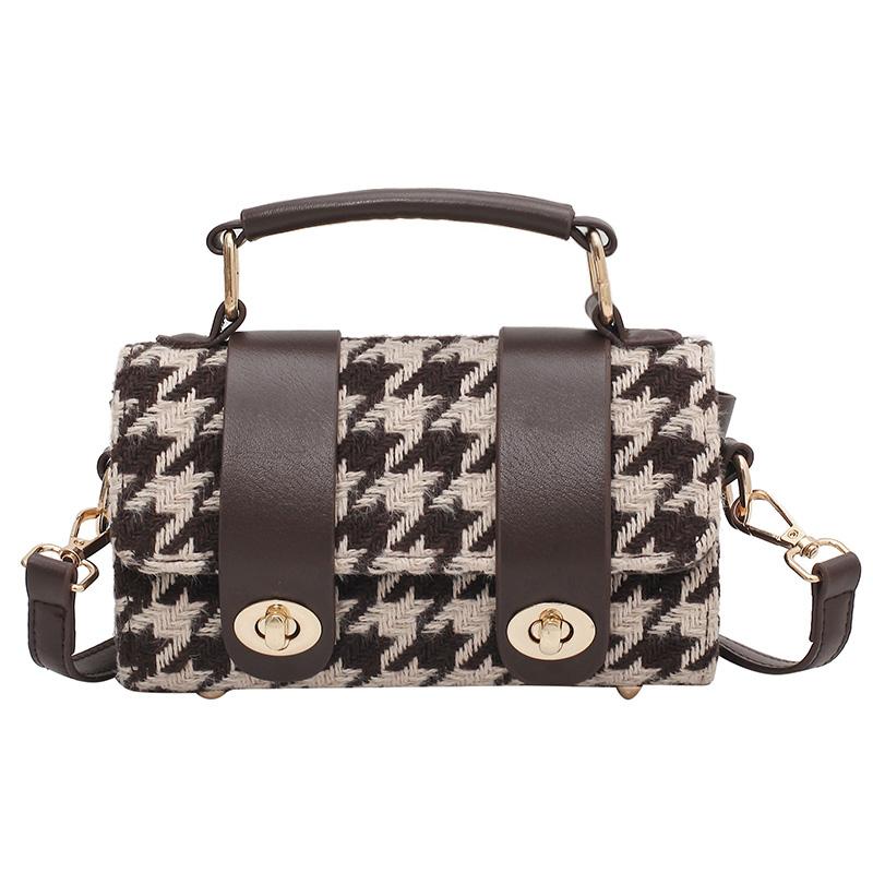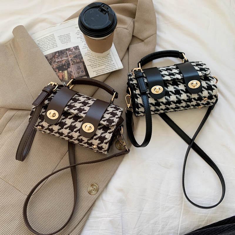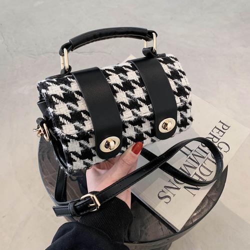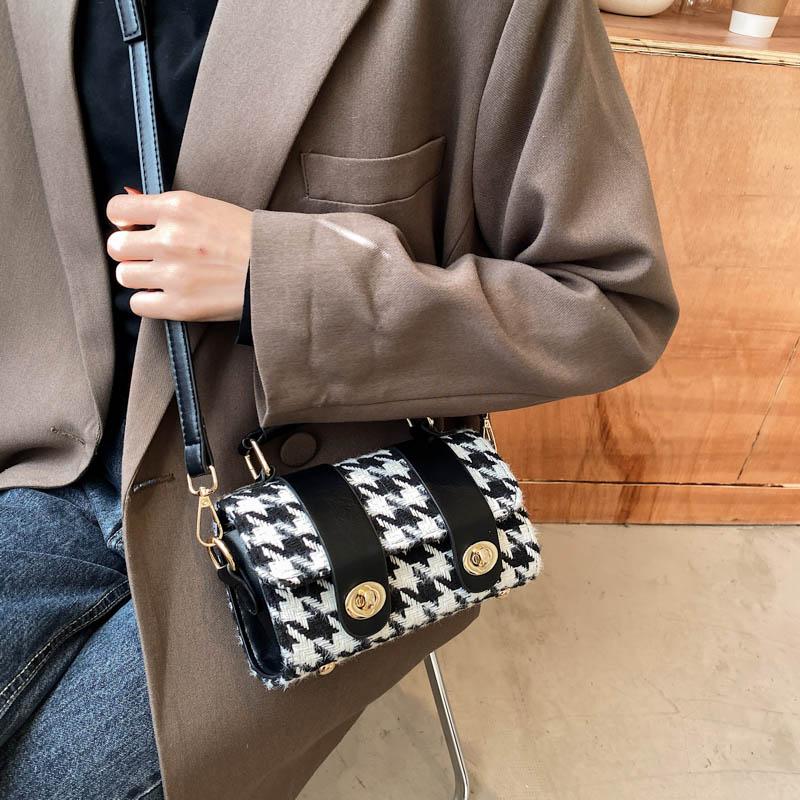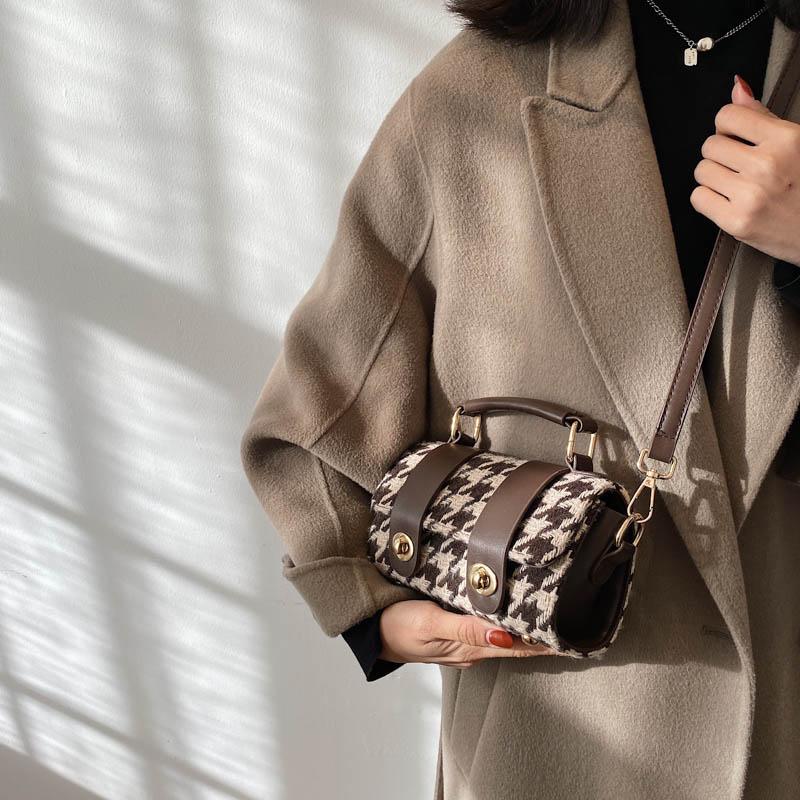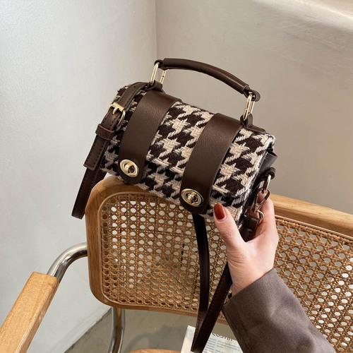 貨號: 秋冬高級感千鳥格毛呢拼皮波士頓包手提包側背斜 分類: ,