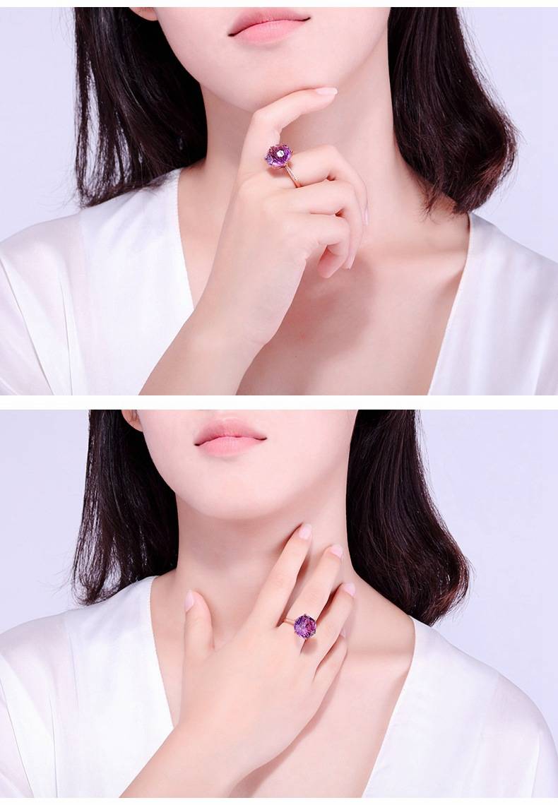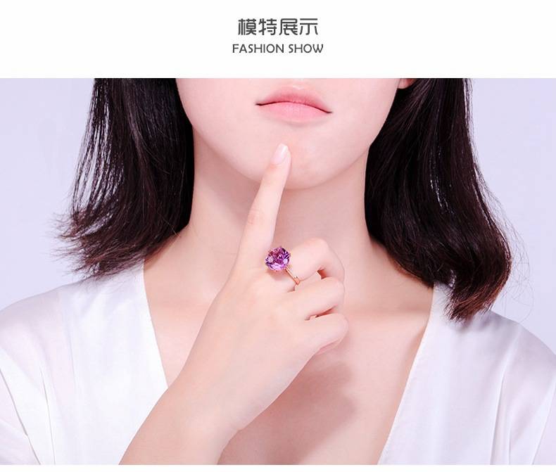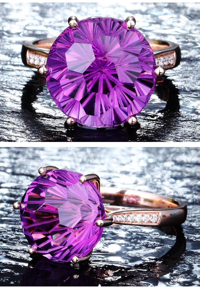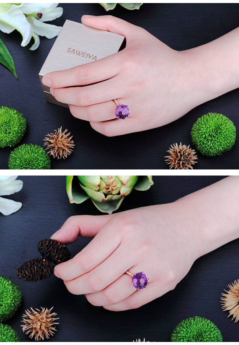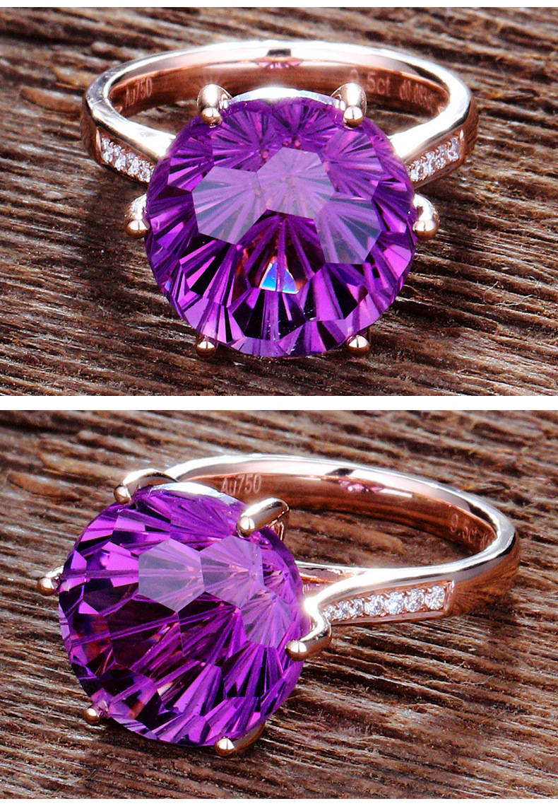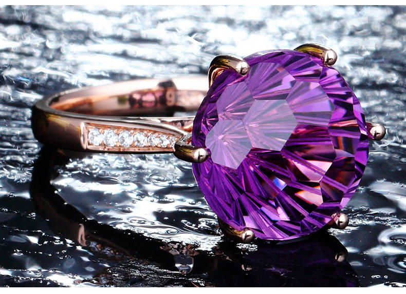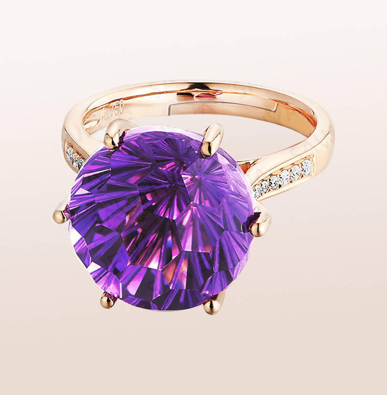 【克拉紫晶】【事業人緣之石】天然烏拉圭6A級紫水晶純銀鍍金鑲鑽經典六爪戒指