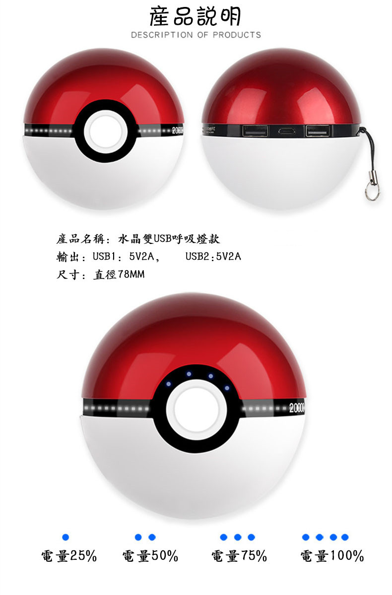 精靈球創意行動電源 | 12000mAh大容量 | 雙USB輸出 | 智慧電量顯示 | 個性實用男女禮物精靈球大容量行動電源生日禮物