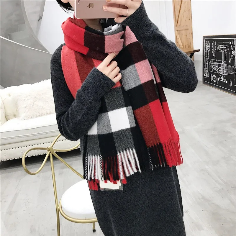 經典格紋羊毛混紡圍巾 | 鉑金級喀什米爾羊絨 | 加大加寬可做披肩 | 超高品質澳洲鉑金級喀什米爾羊絨厚實親膚保暖方格流蘇圍巾披肩
