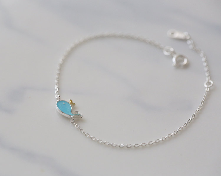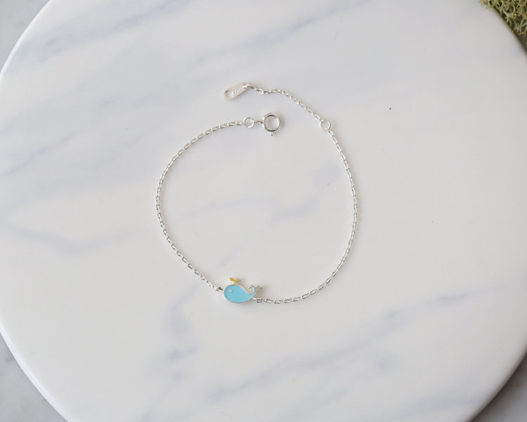 【藍色鯨魚】超美韓版藍色海洋季鯨魚S925純銀手鍊