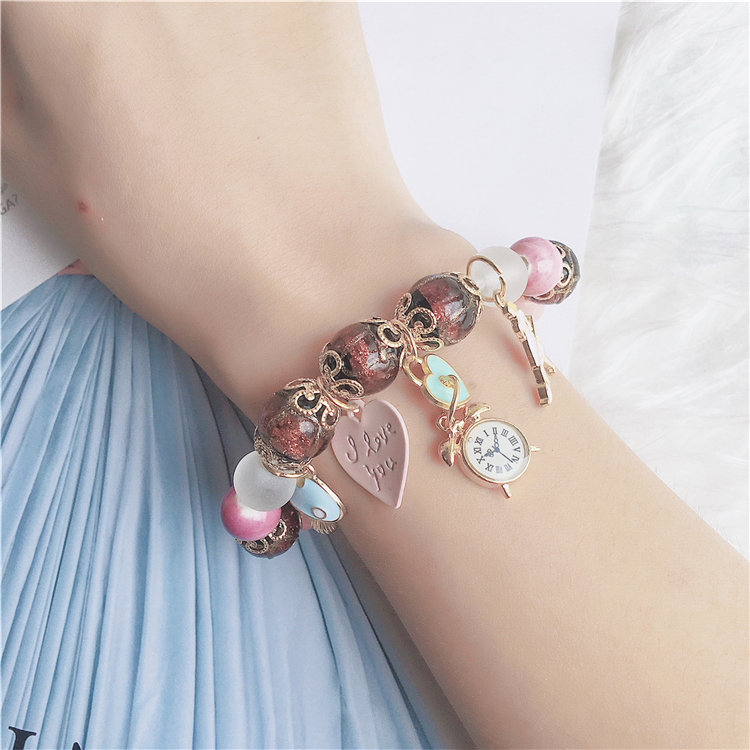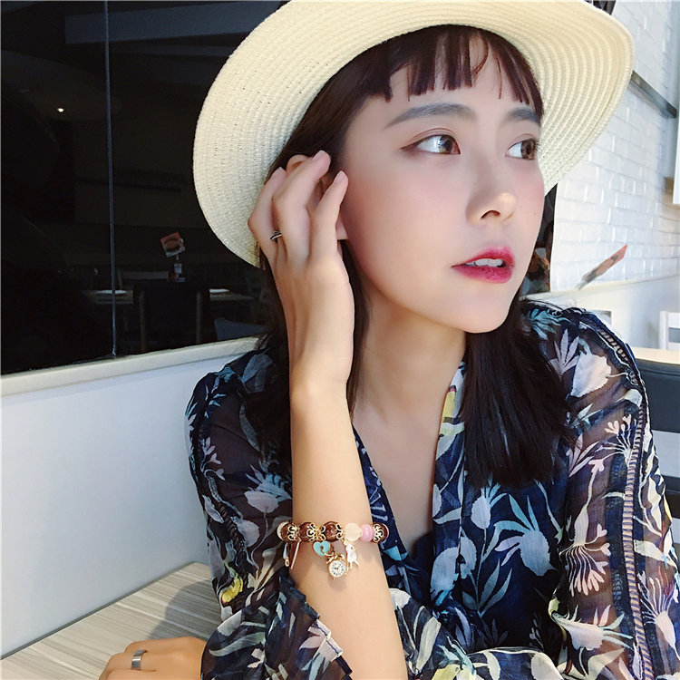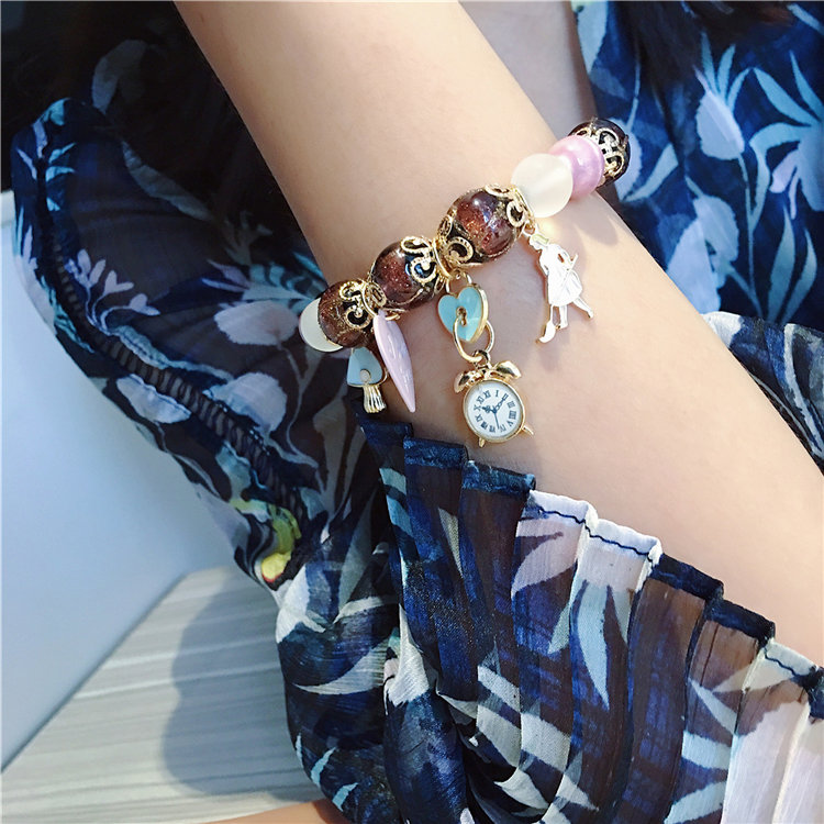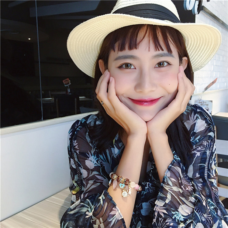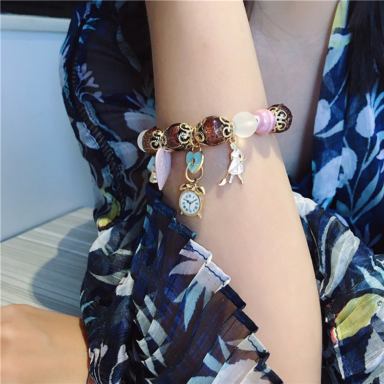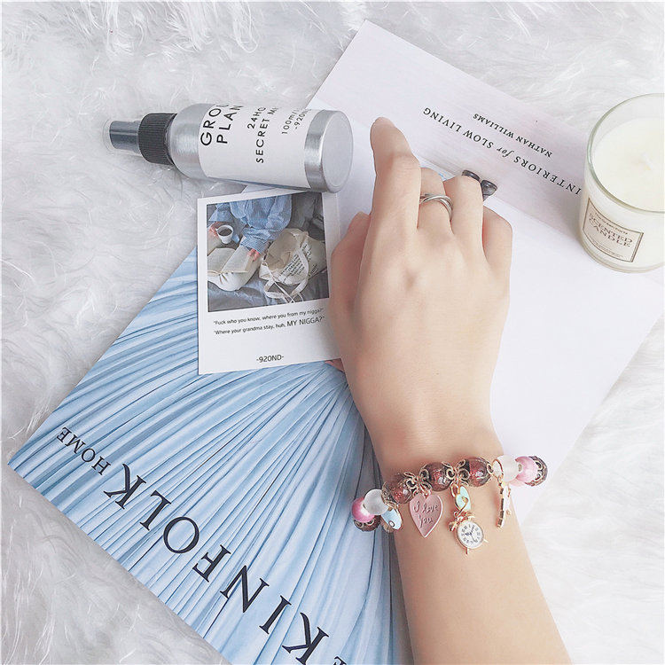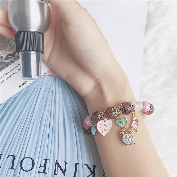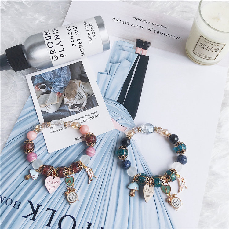 【約會】時鐘元素波西米亞民族風藍色系女孩愛心字母時鐘吊墜手鏈手串