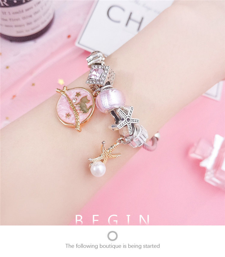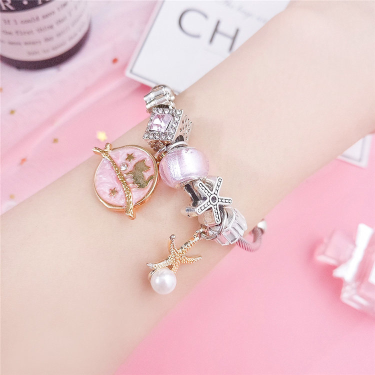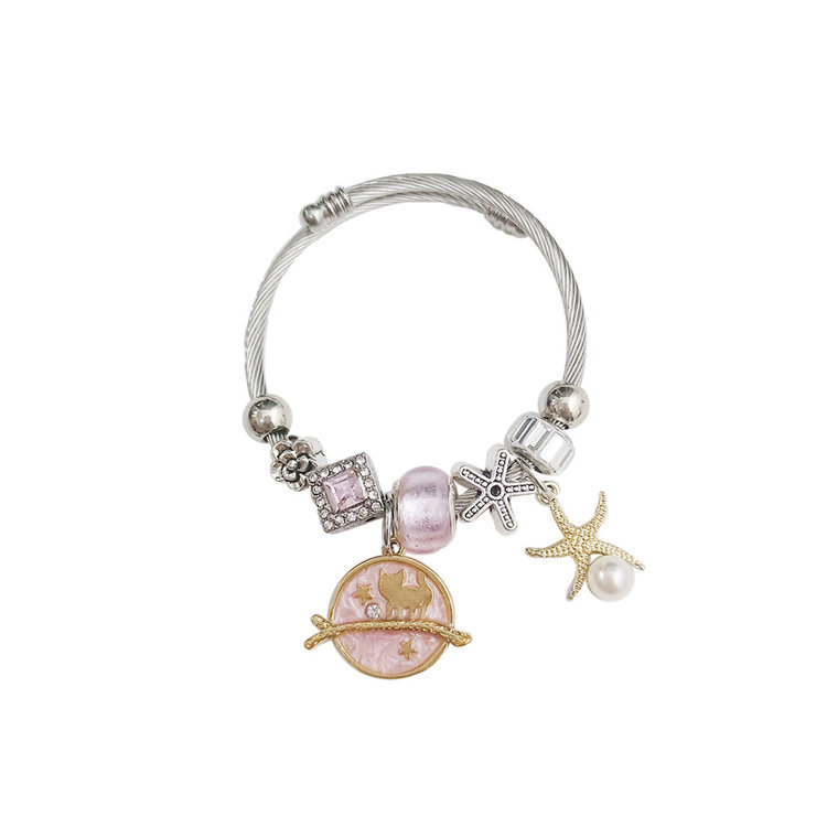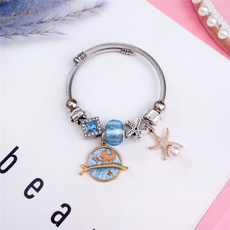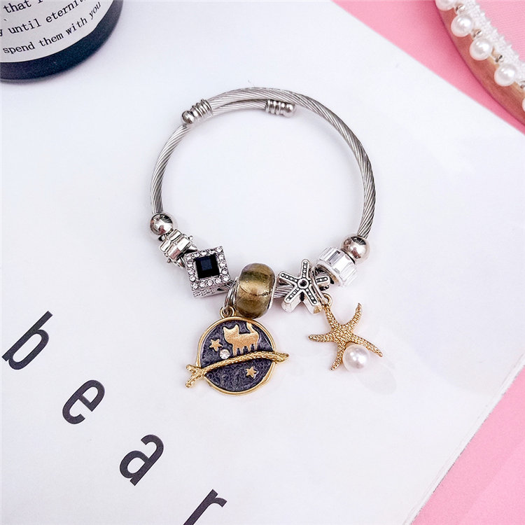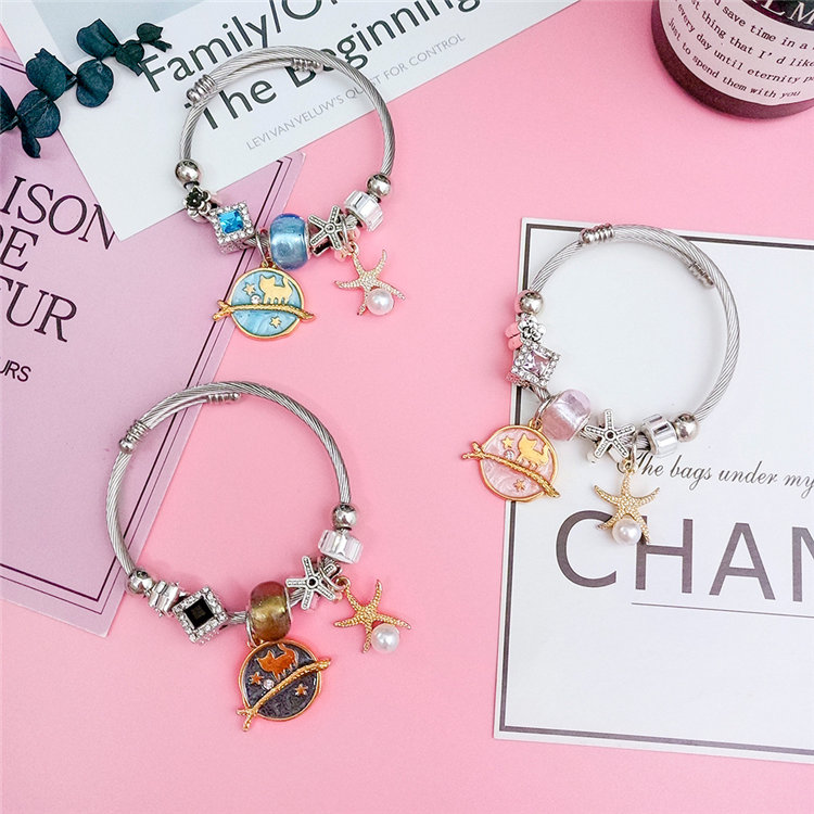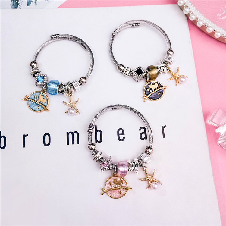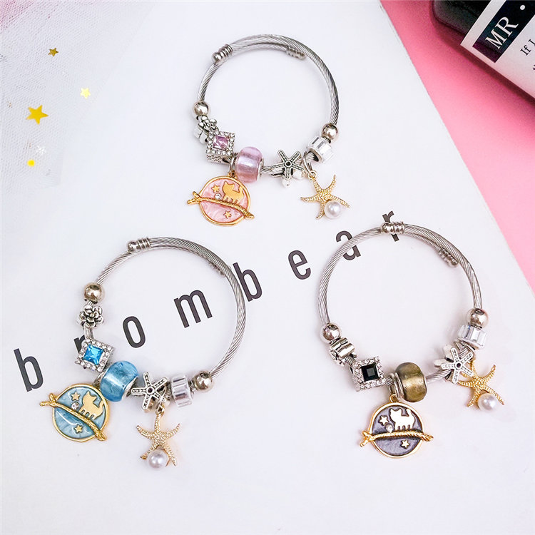 【太空貓咪】新款太空系列可愛貓咪海星元素琉璃珍珠水晶合金手鍊