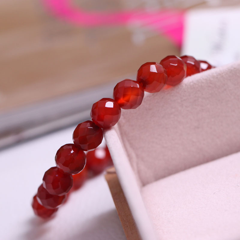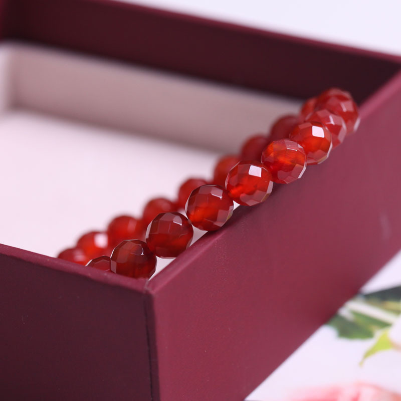 【紅瑪瑙】【平安之石】珍品天然冰種刻面10mm紅瑪瑙手鍊辟邪開運福佑吸收負能量