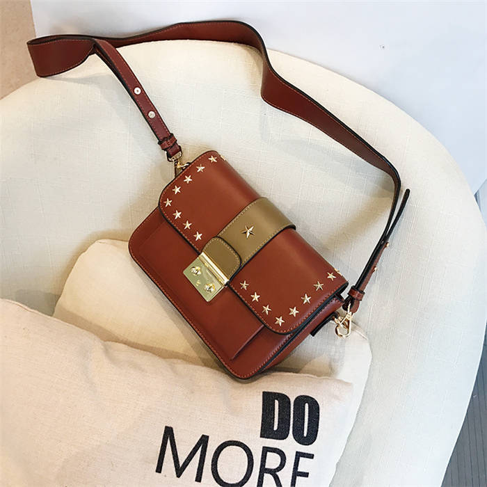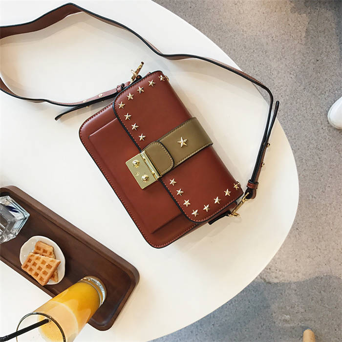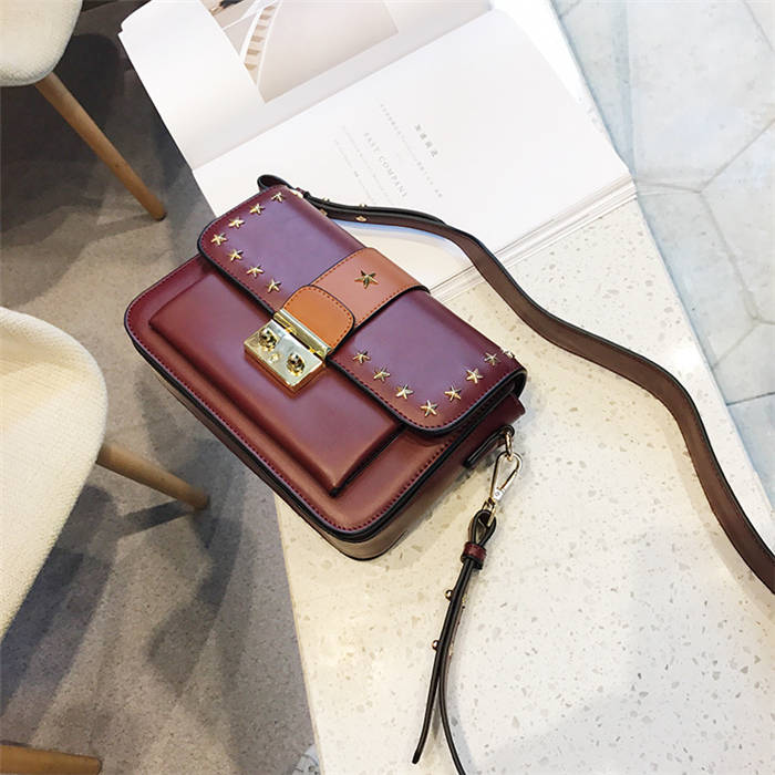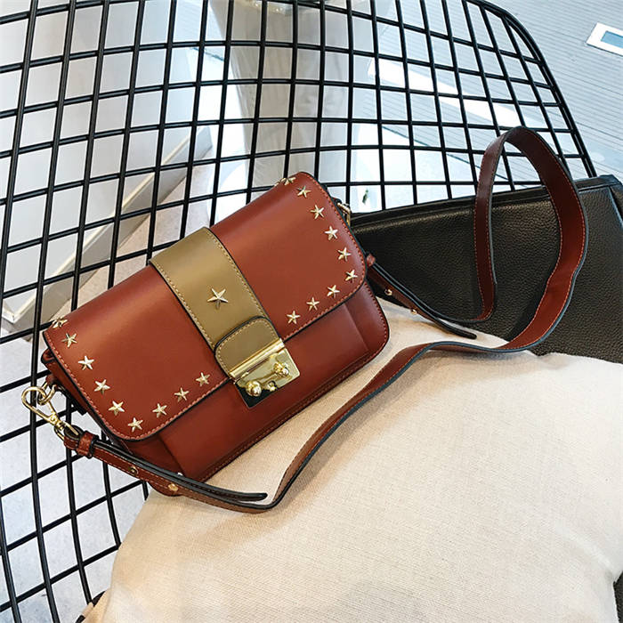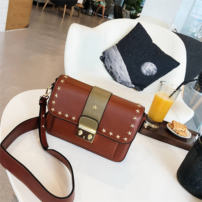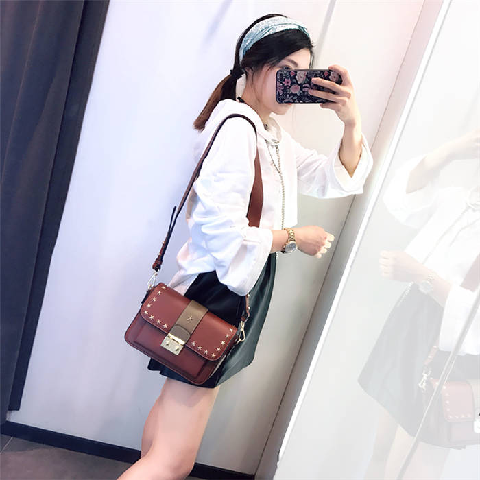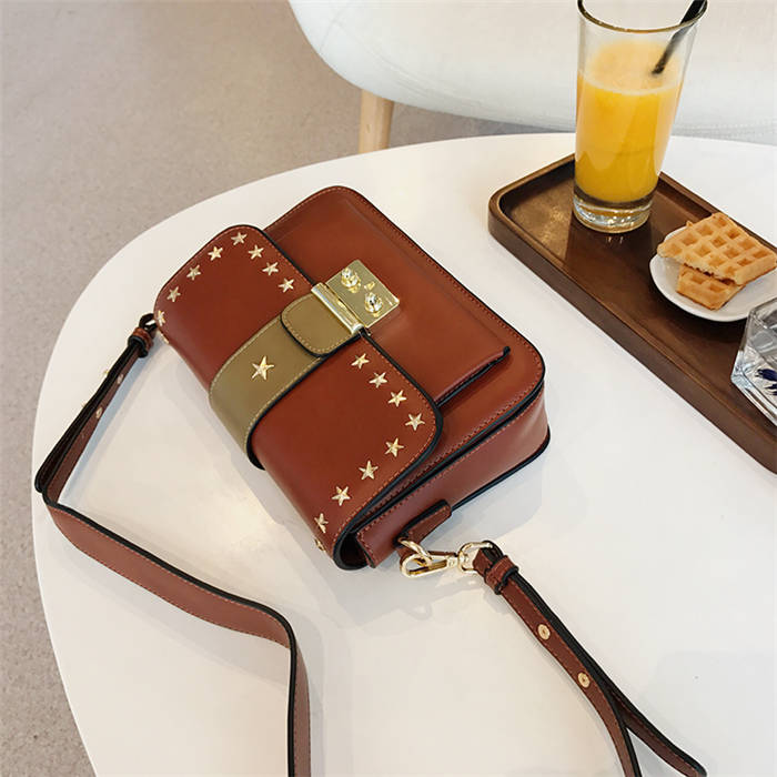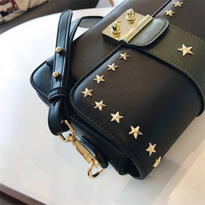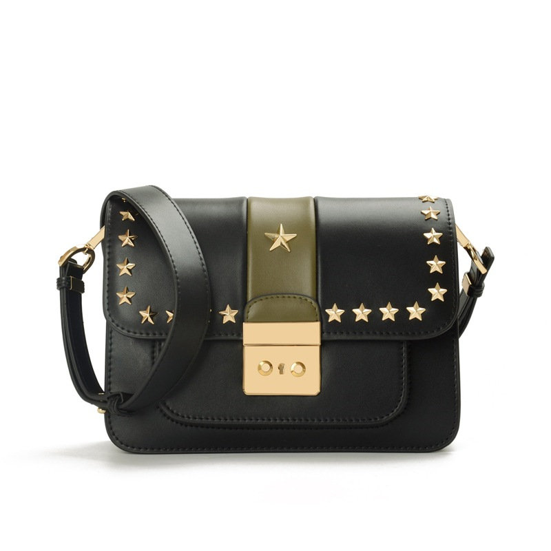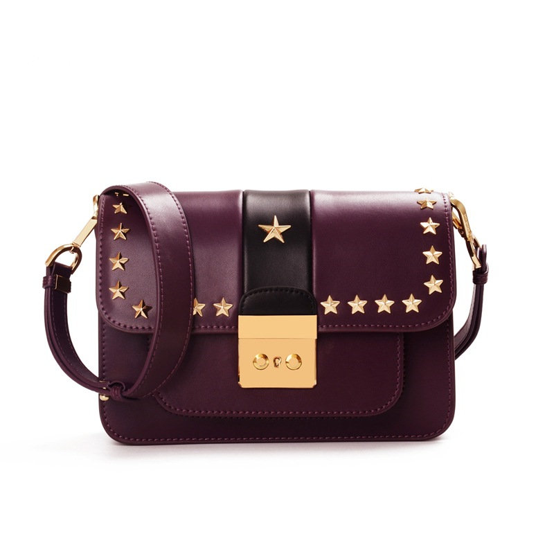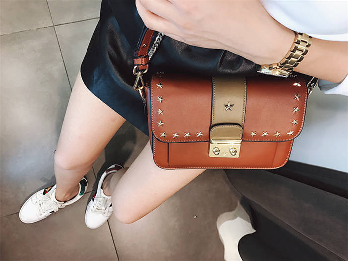 【五角星鉚釘包】MIKE熱賣高檔頂級真皮五角星柳釘復古肩背郵差包小方包