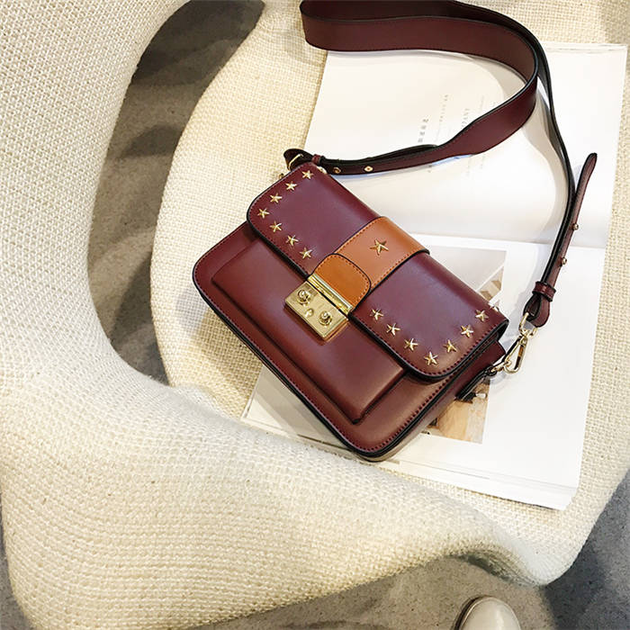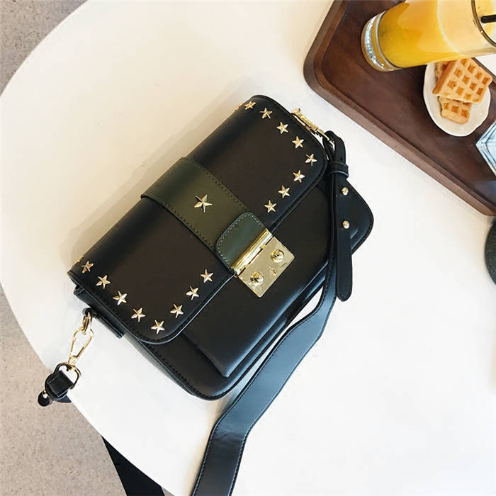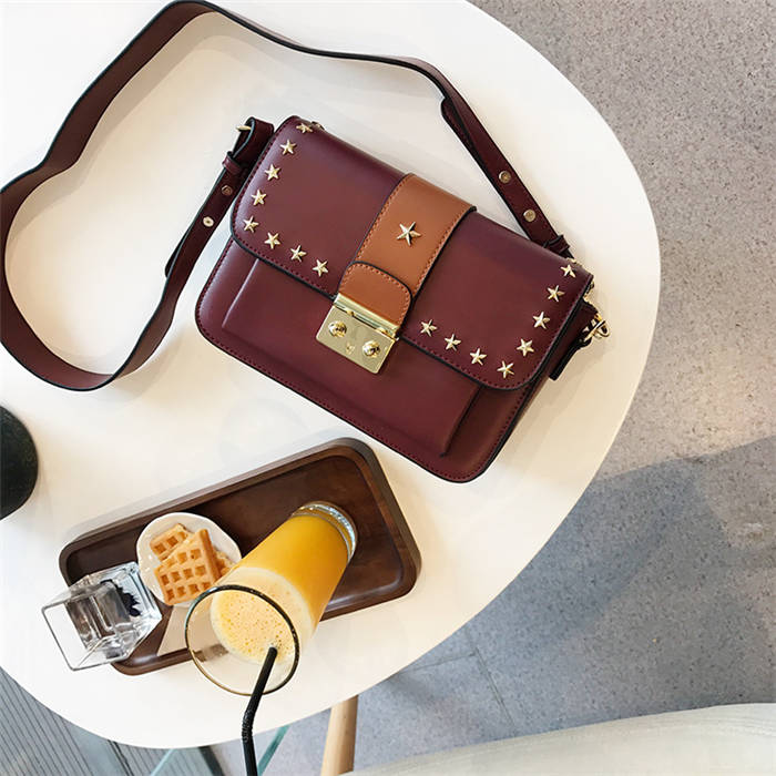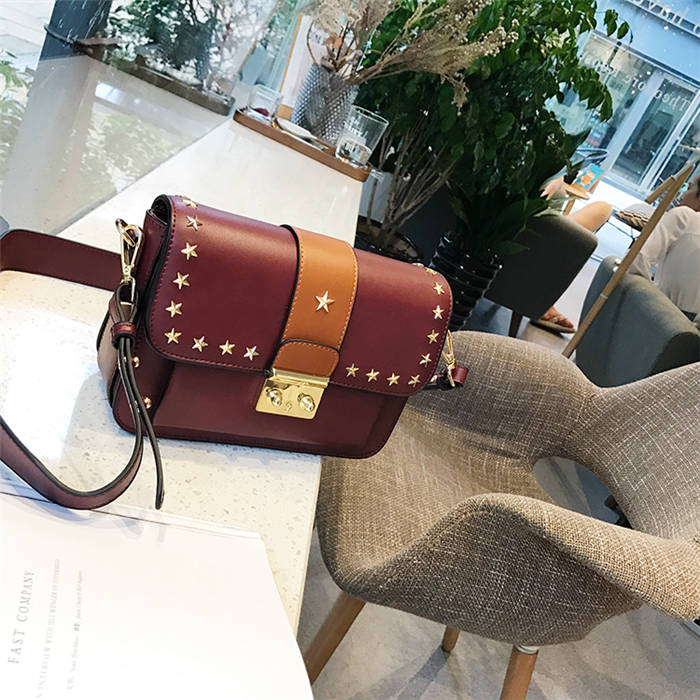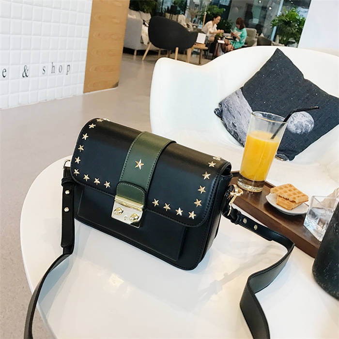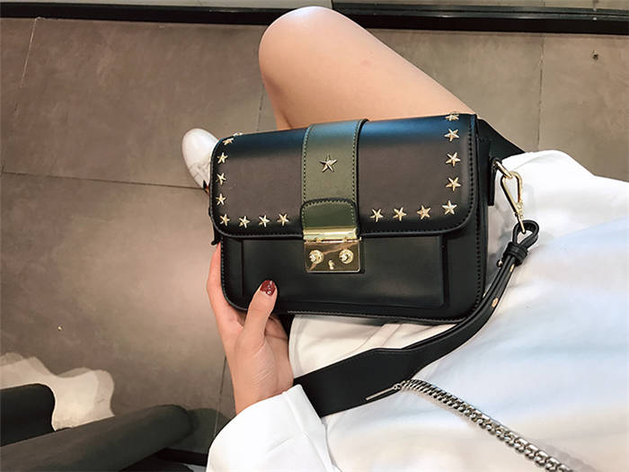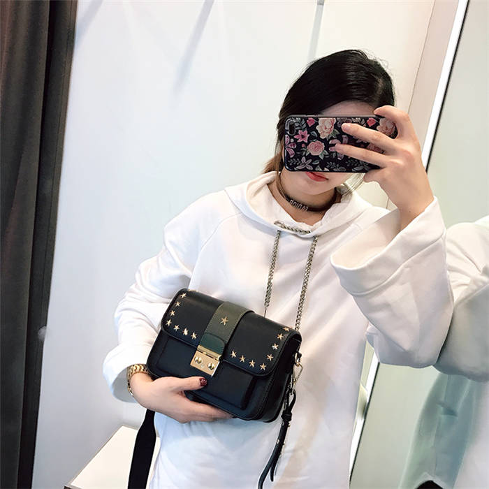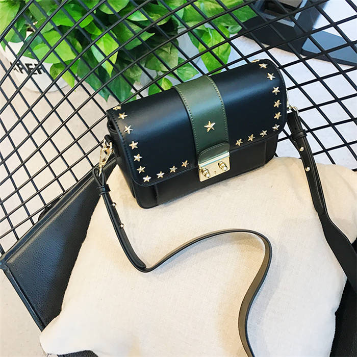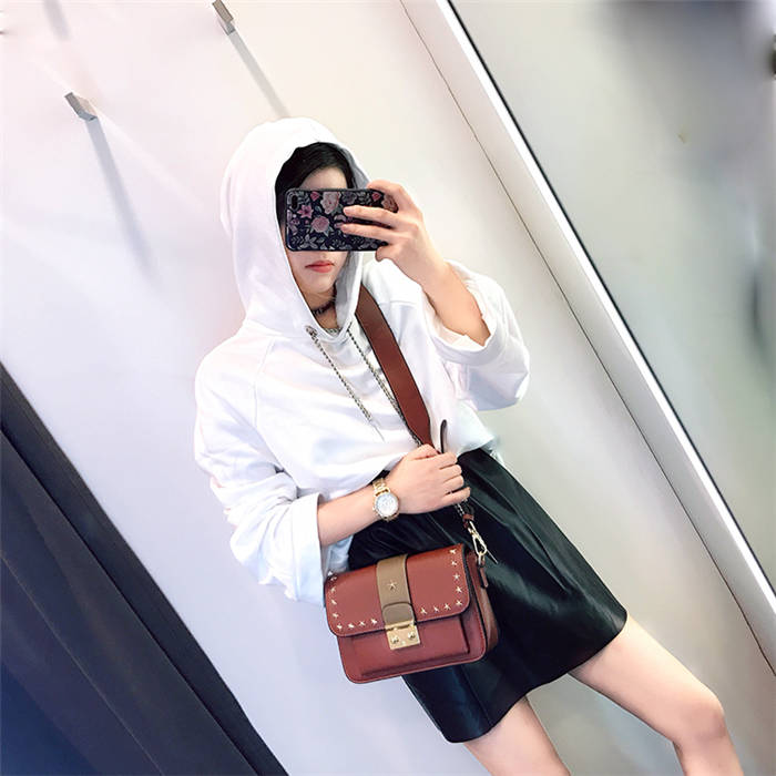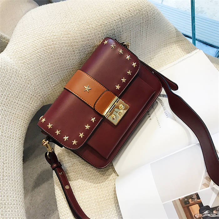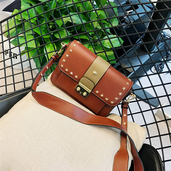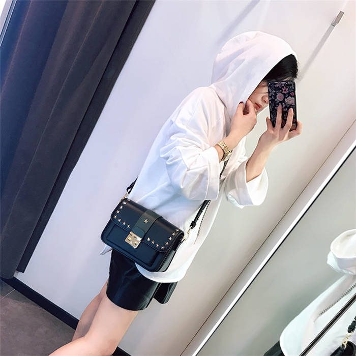 【五角星鉚釘包】MIKE熱賣高檔頂級真皮五角星柳釘復古肩背郵差包小方包