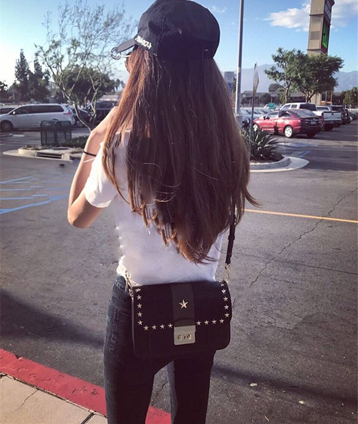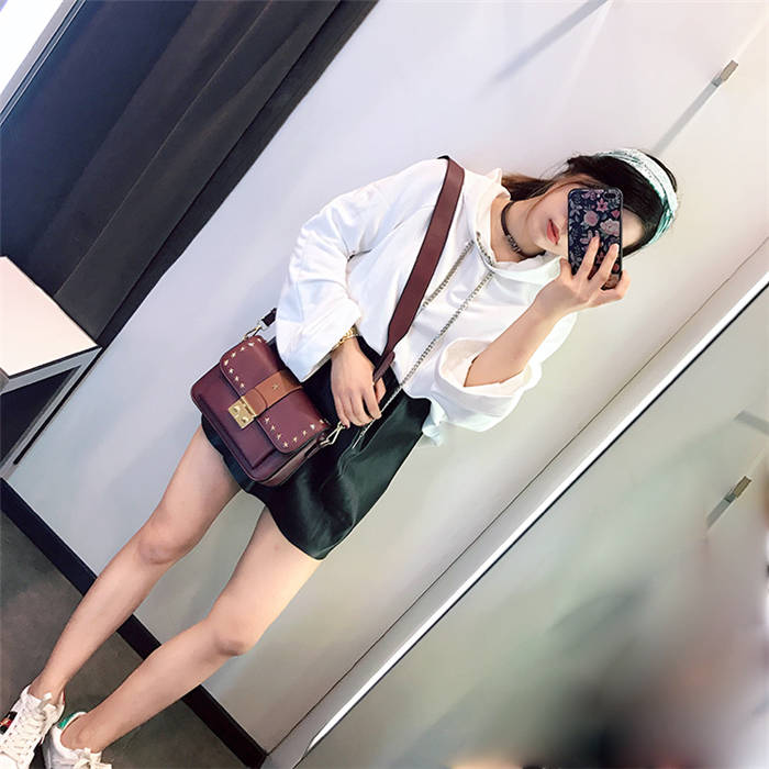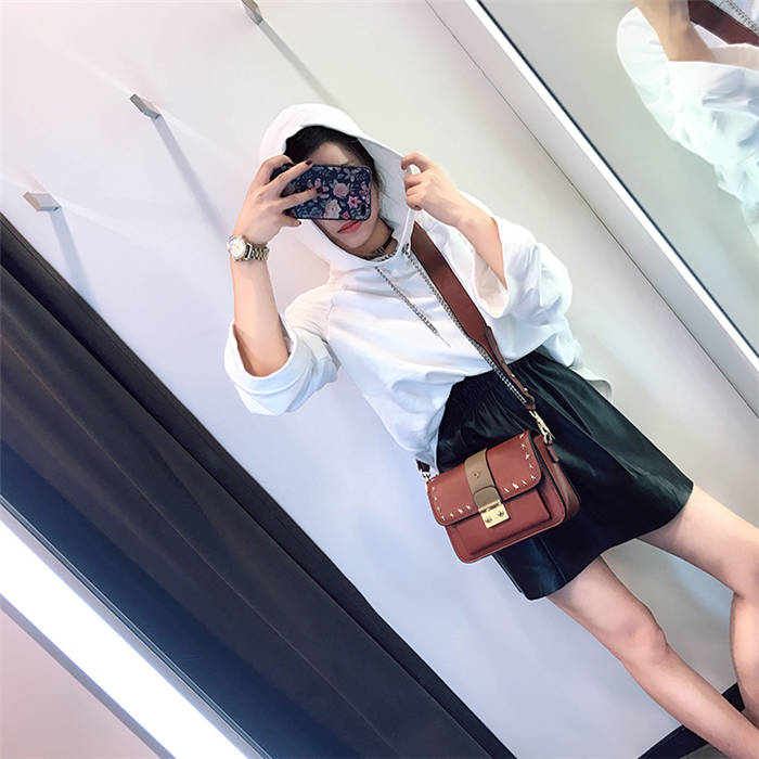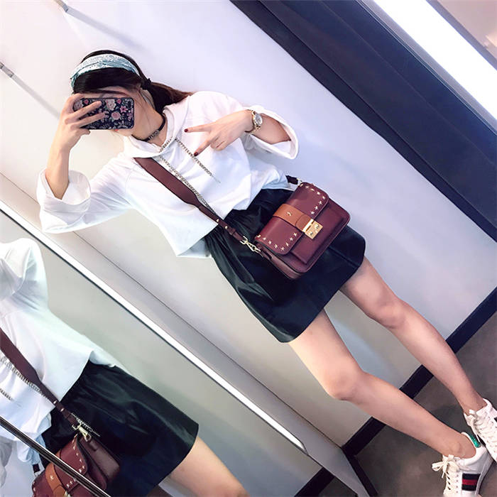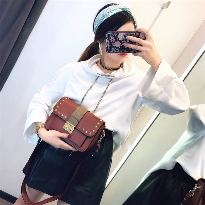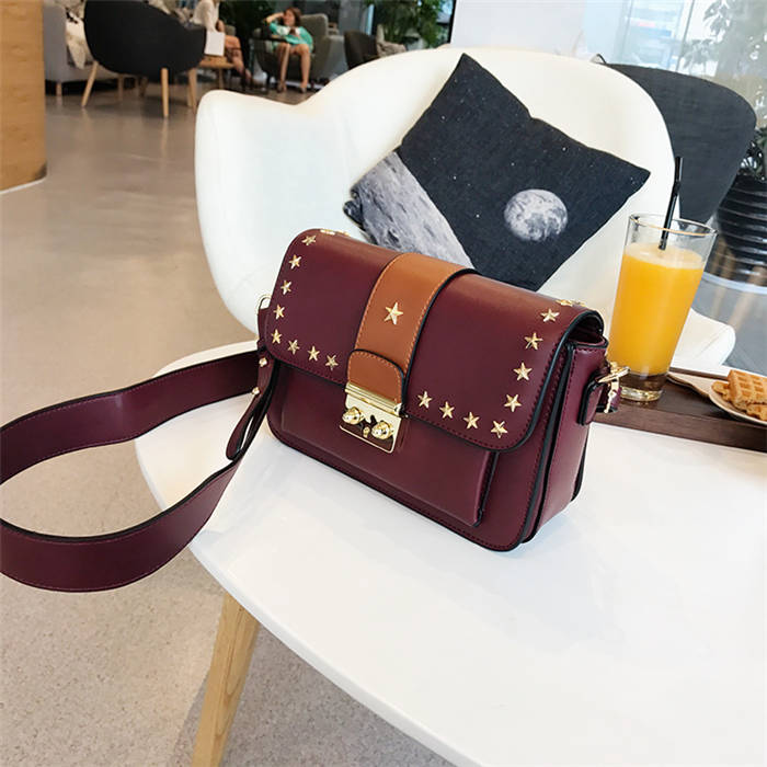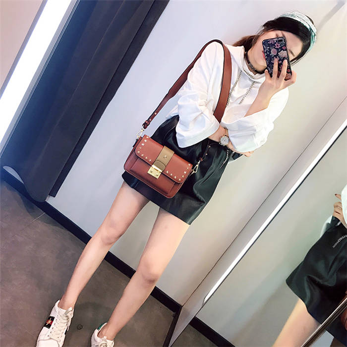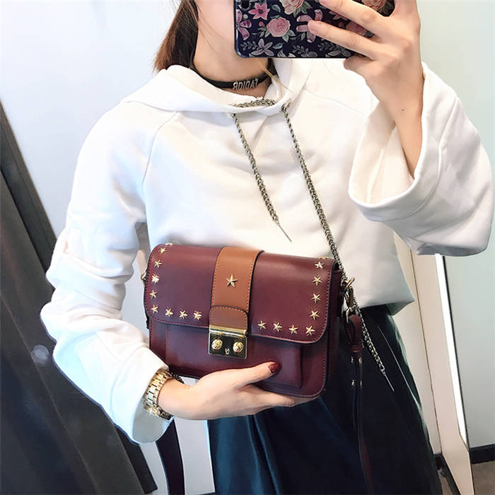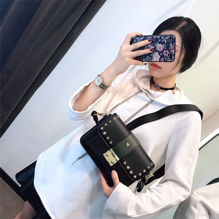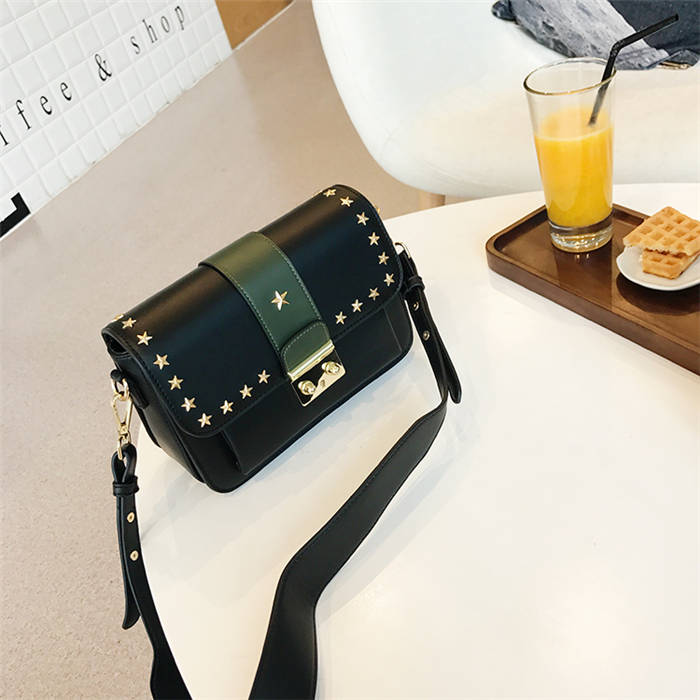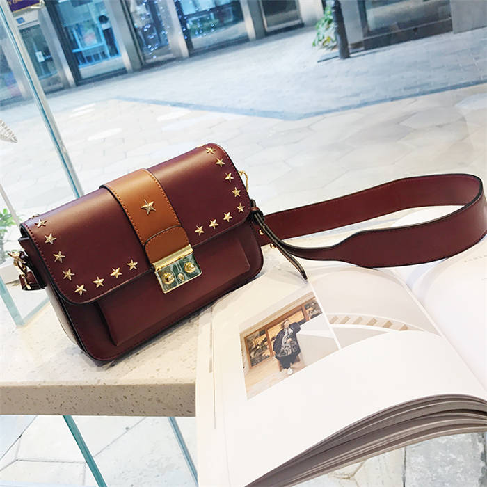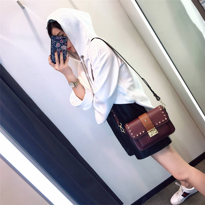 【五角星鉚釘包】MIKE熱賣高檔頂級真皮五角星柳釘復古肩背郵差包小方包