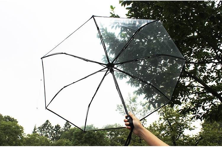 【清新透明傘】【正韓設計】正韓文藝清新加固加厚八骨透明自動折疊傘