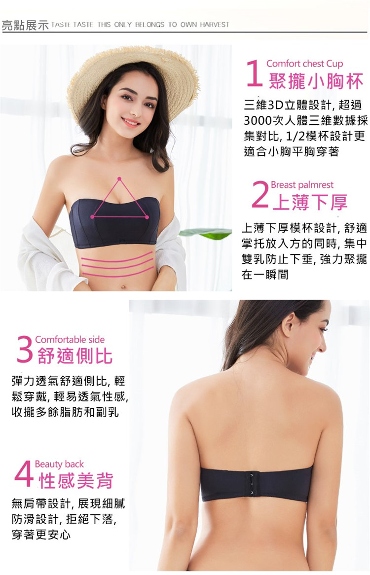 【一字領必備】夏季一字領必備無肩帶拒絕下滑超聚攏無痕無鋼圈內衣