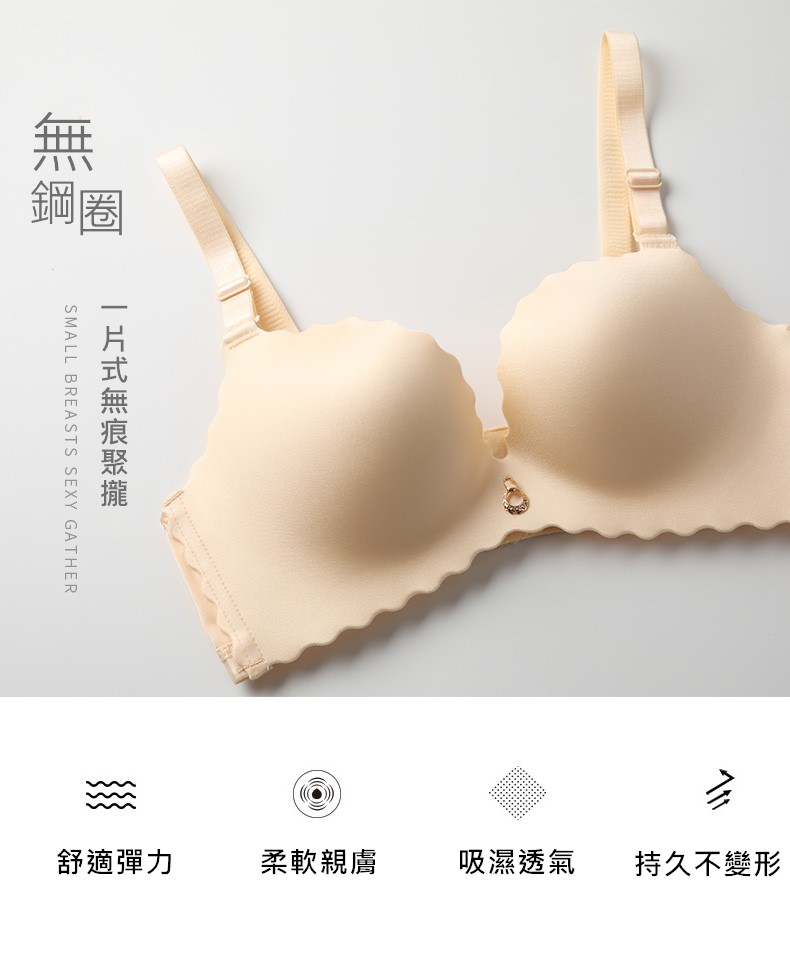 【甜美聚攏無鋼圈】韓系超美淺灰色夏季小胸舒適聚攏上托收副乳美背無鋼圈素色內衣