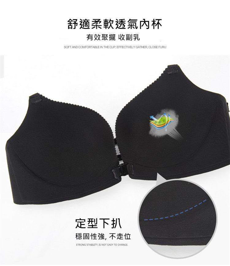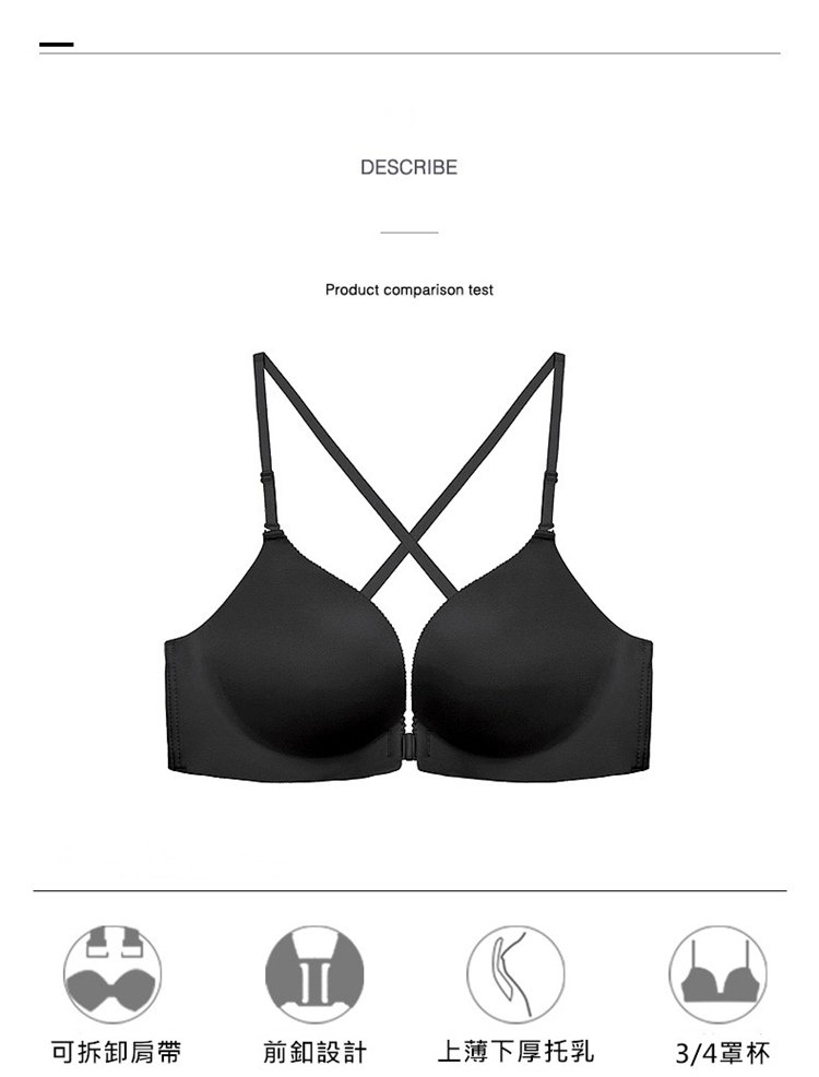 【前扣聚攏無鋼圈】性感前釦美背強聚攏上托無鋼圈內衣交叉背帶