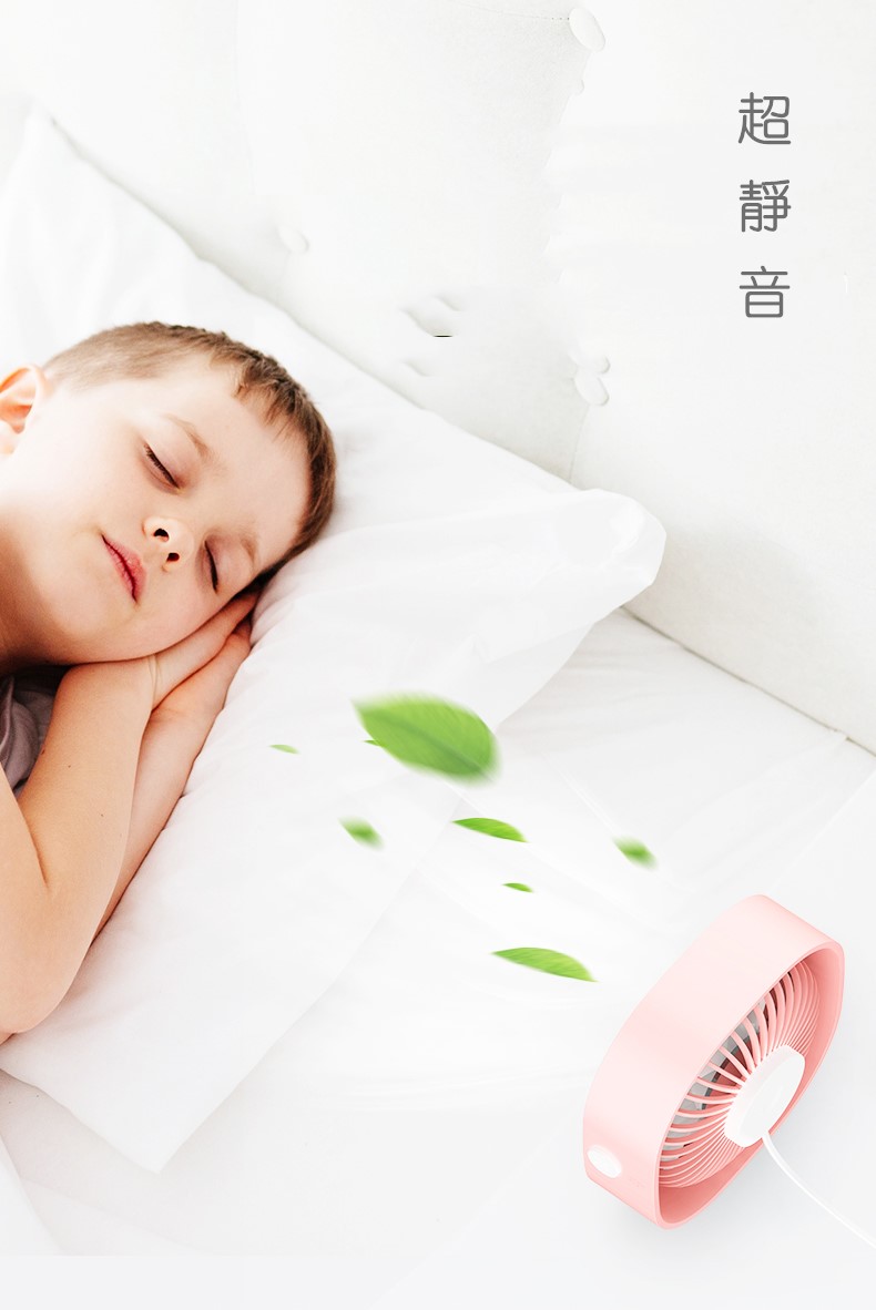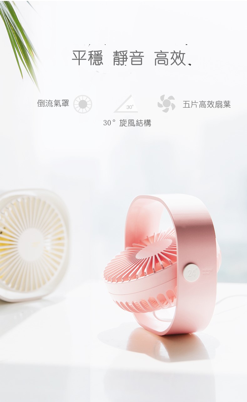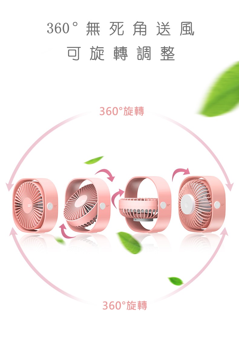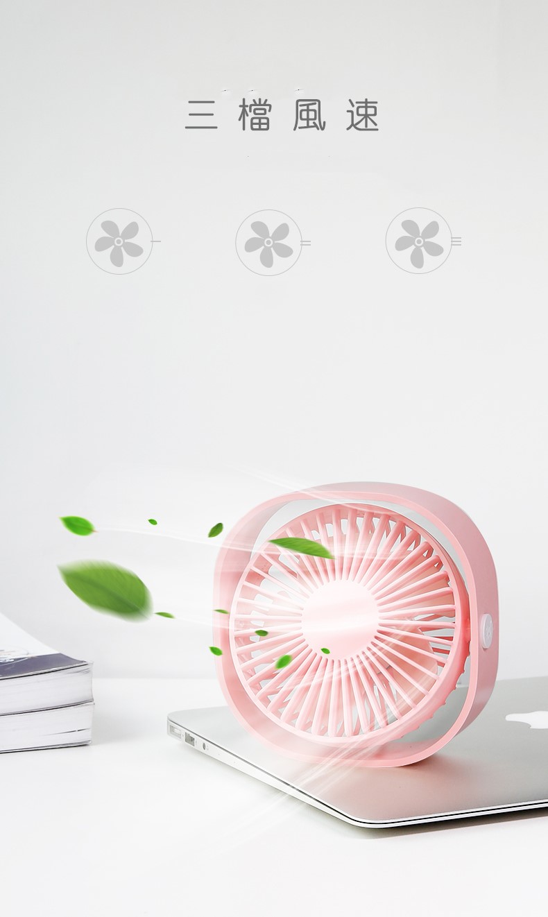 【360°無死角】360°無死角送風超靜音大風力三檔調速USB桌上風扇蜜桃粉